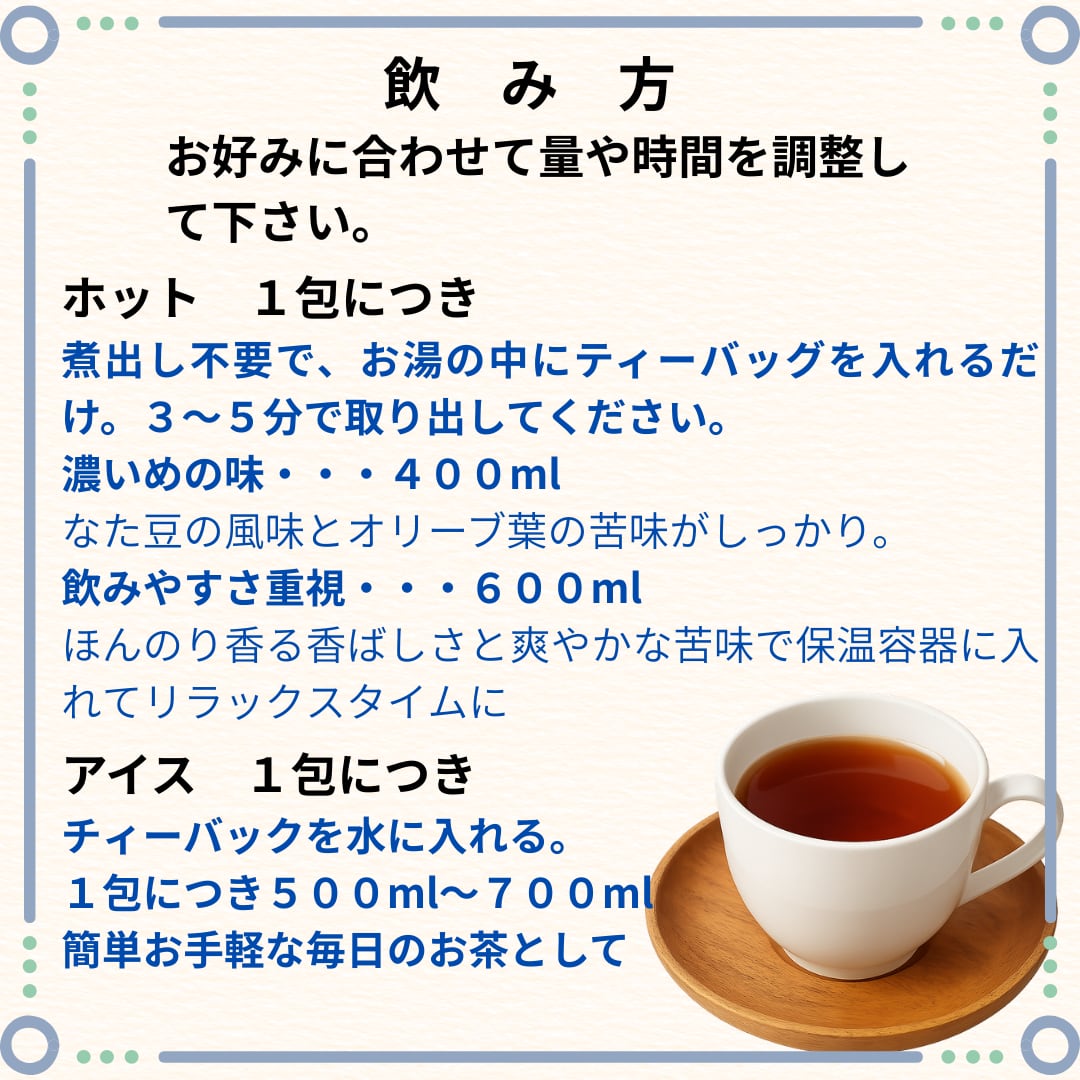 瀬戸内産なた豆とオリーブ葉を贅沢にブレンドした、健康志向のブレンドティーの登場です!