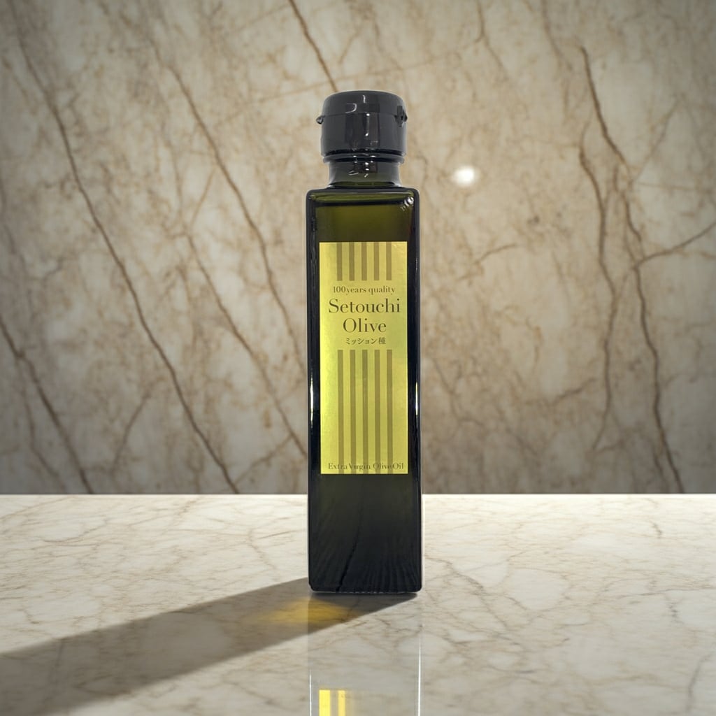 瀬戸内オリーブ園の自家栽培オリーブ果実、ミッション種を搾油したエクストラバージンオリーブオイルです。